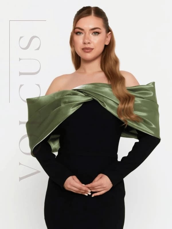 لفّة ساتان خضراء تمنح الفستان لمسة فخمة ولافتة