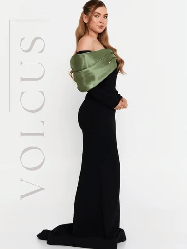 تألّقي بإطلالة فاخرة تجمع بين الجرأة والرقي مع هذا الفستان الأسود المصنوع من فيسكوز ناعم بمرونة خفيفة تمنحك راحة وأناقة في كل مناسبة. يأتي بتصميم أوف شولدر يبرز جمال الأكتاف، مع لفّة ساتان خضراء تضيف لمسة فخمة تلفت الأنظار وتمنح الفستان طابعًا مميزًا لا يشبه غيره.